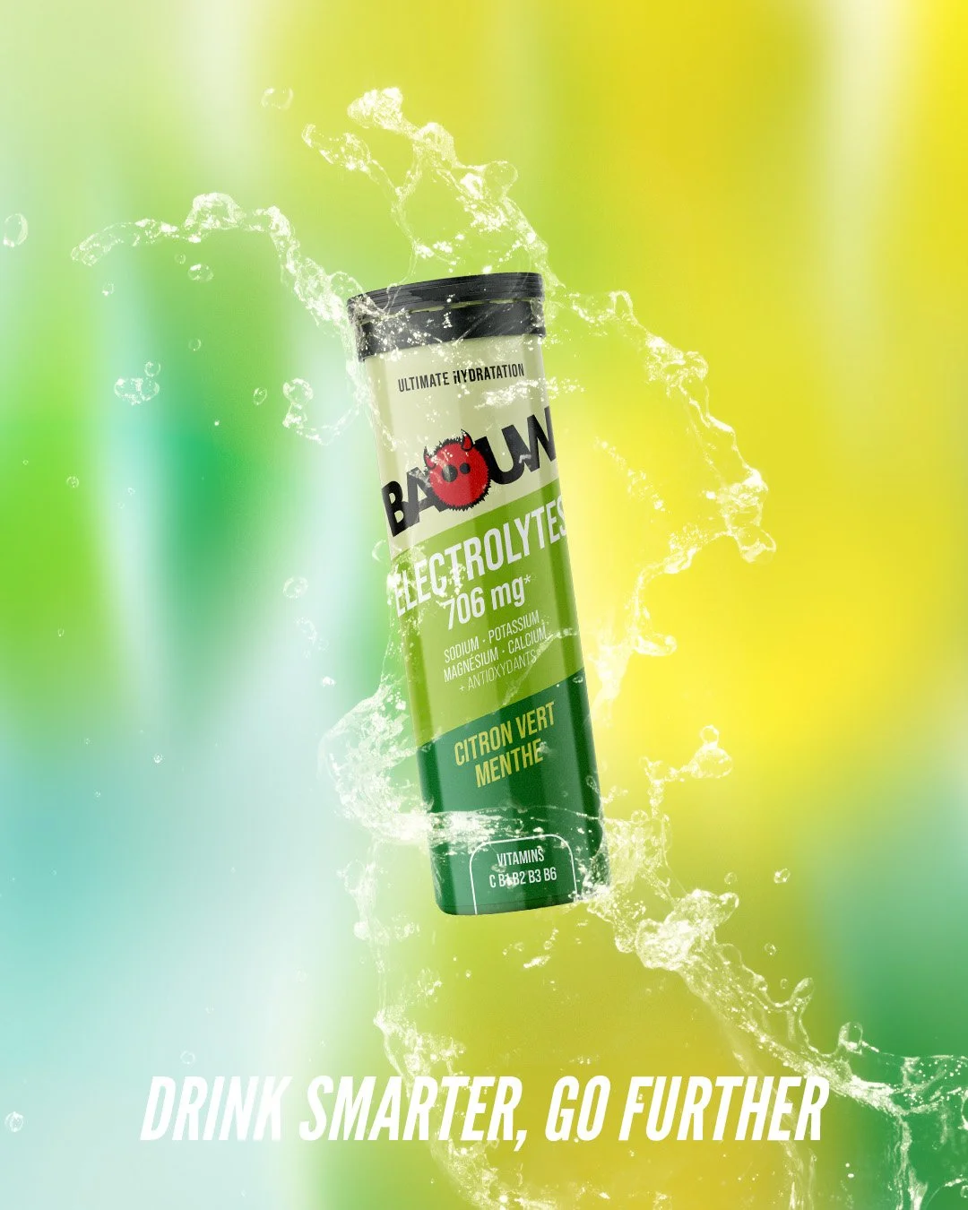 Design de la campagne des pastilles électrolytes et de la casquette Baouw 2025.