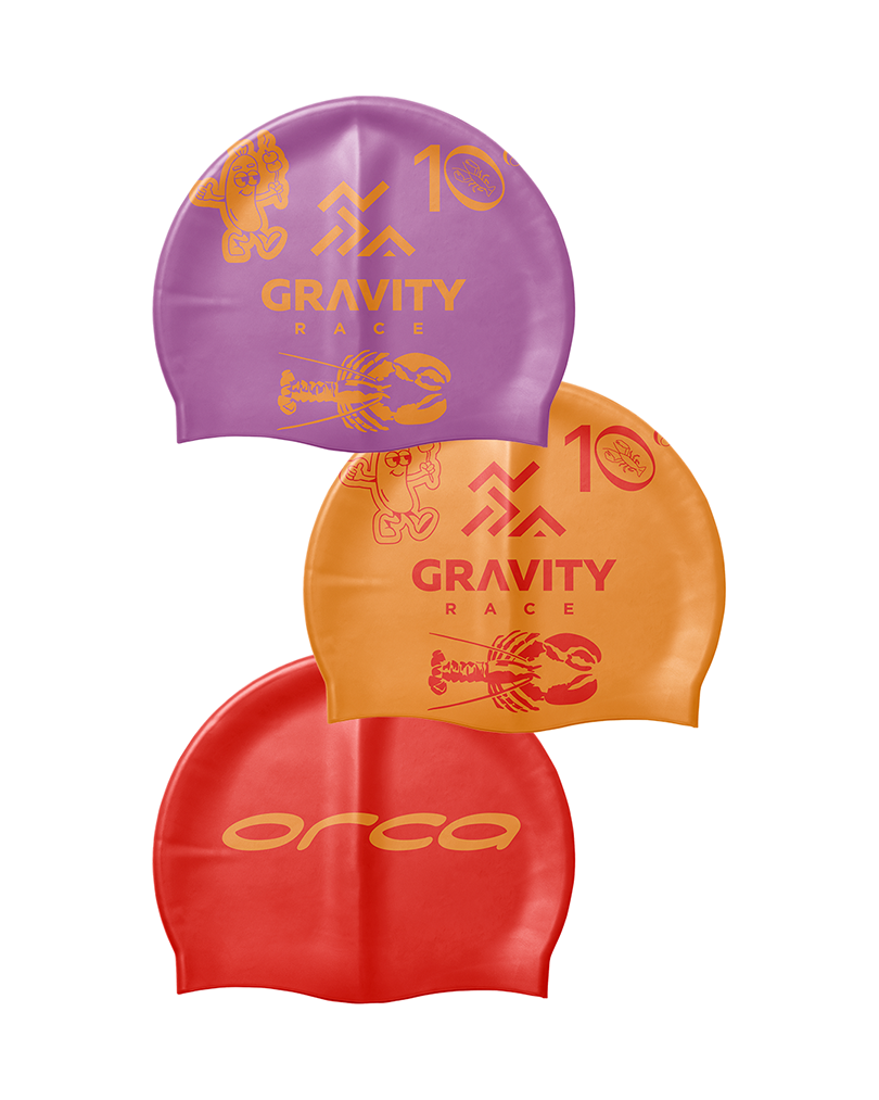 Logo Gravity Camp, logo pour la 10ème édition, arche d’arrivée, bonnets en collaboration avec Orca.